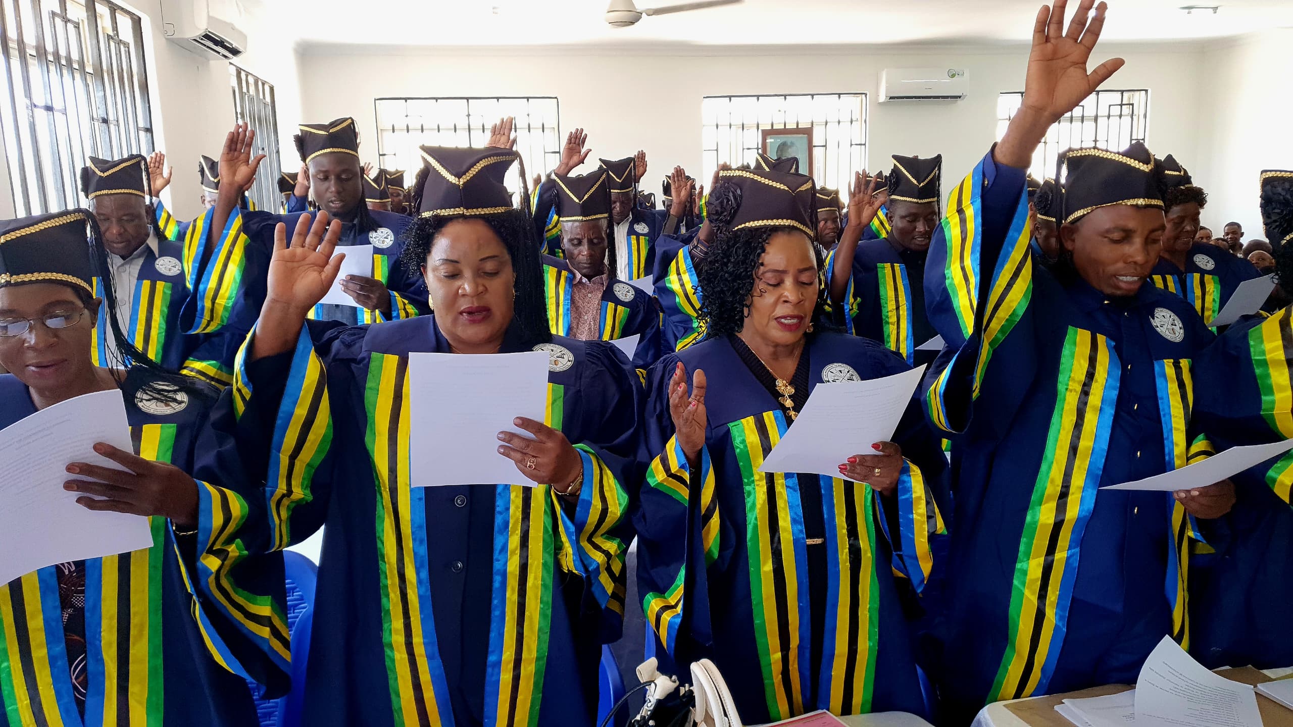 Waheshimiwa Madiwani wakihapa leo tarehe 2/12/2025 wakati wa uzinduzi wa Baraza Jipya la Madiwani uliofanyika katika ukumbi wa Jengo jipya la Halmashauri ya Wilaya ya Maswa